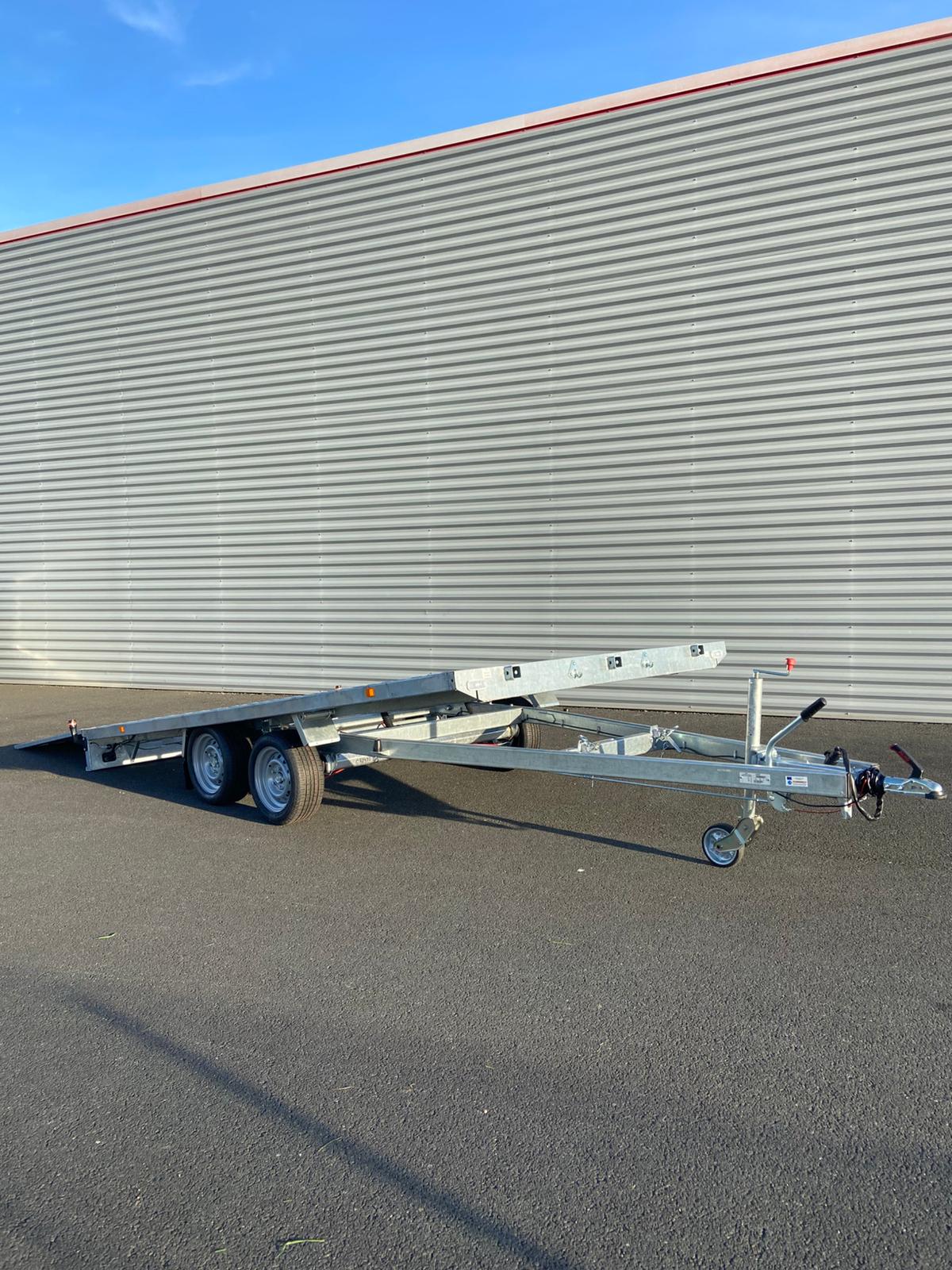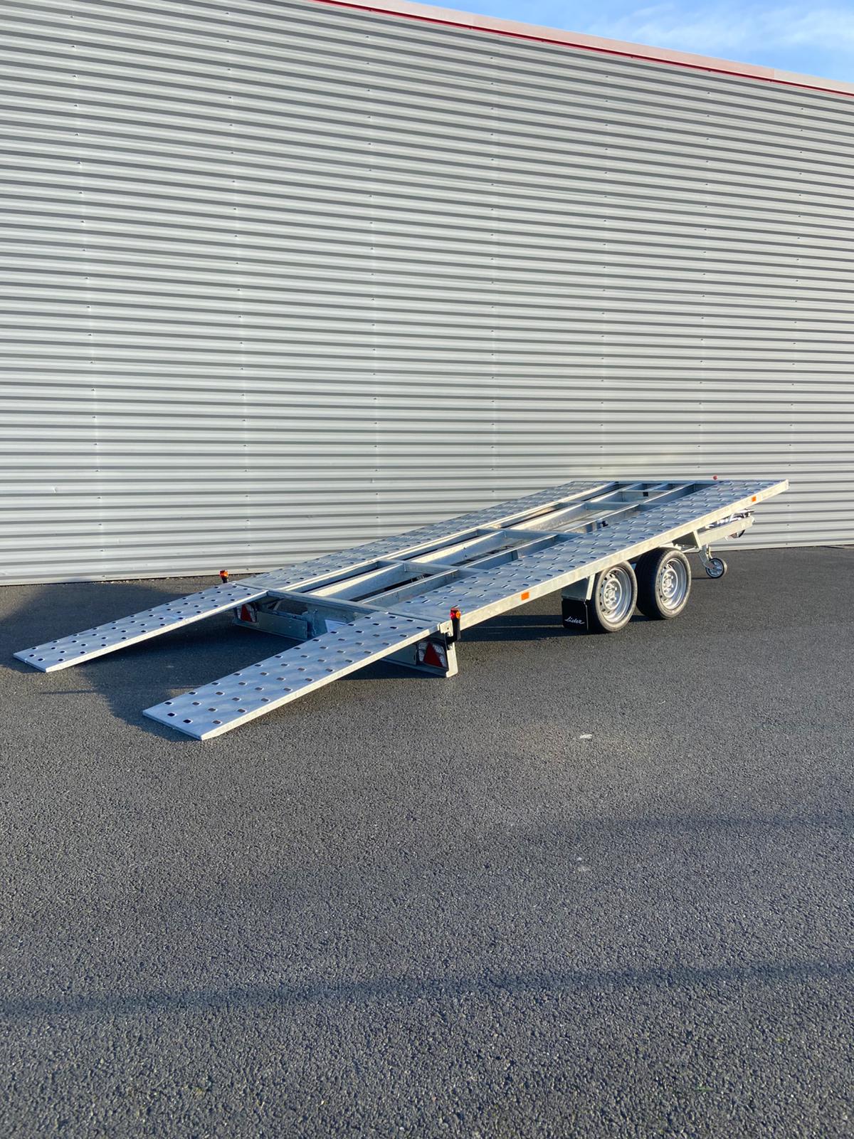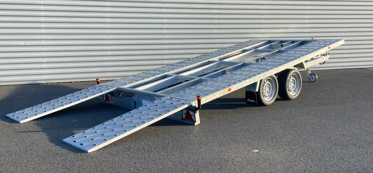 Remorque Lider porte voiture 43720 promo 5059 € ttc max options : inclus basculement , cales de roues , treuil , plancher